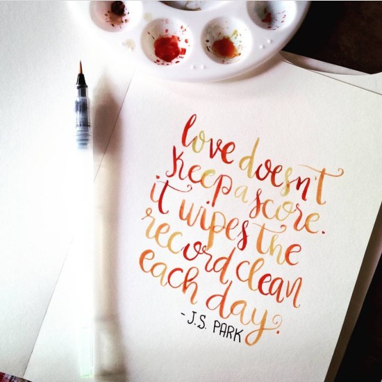 Love doesn’t keep a score. It wipes the record clean each day. It says good morning today and goodbye to yesterday.